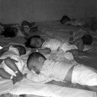 An epidemic of measles ravaged the Friends of Children of Viet Nam Nursery in October and November of 1974, claiming the lives of forty of our babies, one-third of our nursery. The psychological impact of this loss was severe for our Vietnamese and American staff, yet we knew, that in spite of this tragic loss, our babies faced a better chance of survival in our center than in the orphanages where the infant mortality rate was often as high as eighty per cent. If our initial struggle for life was won, the infant would be placed in the care of one of our Vietnamese foster mothers, thus isolating the baby from massive exposure to communicable diseases, which was ever present in our nursery. A referral photo and information sheet was prepared for each infant and sent to our agency in the United States. The information transmitted presented the infant by "nursery name", approximate age, general health, racial background, sex, and included any information pertinent to the infant. The infant was then offered to a family approved by our agency. When the family accepted the infant, the family's dossier was forwarded to the staff in Viet Nam. During the interim, the Delta Orphanages would give us birth certificates they had secured for groups of infants that they had entrusted to our custody. The method used co obtain these birth certificates was for the orphanage to randomly select names for a group of infants who were born at approximately the same time; in some instances, fictitious mothers' names were also furnished. This information was then filed with the Provincial Court by the orphanages and after varying lengths of time certificates would be issued. Me would then bring these birth certificates to our office in Saigon.